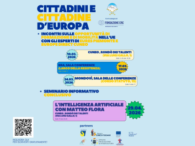 Martedì 24 marzo dalle 15 alle 17 a Mondovì presso la sala delle conferenze comunale (corso Statuto) l’associazione Apiceuropa approfondisce le opportunità di mobilità e formazione disponibili nell’Unione Europea e la conoscenza dell’Intelligenza Artificiale, all’interno del prog