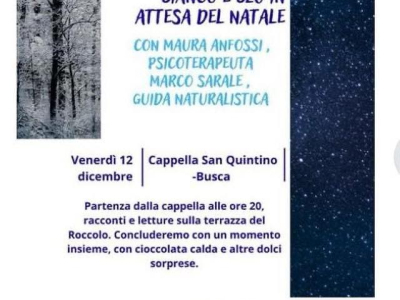 Il 12 dicembre, presso la cappella di San Quintino a Busca, è organizzata una passeggiata introspettiva in notturna in compagnia di una psicoterapeuta e una guida escursionistica ambientale.