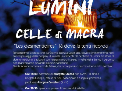 Lunedì 5 gennaio, a partire dalle ore 18,00 a Celle di Macra, il suggestivo borgo della Valle Maira vivrà una delle sue serate più magiche: "La Notte dei Lumini".