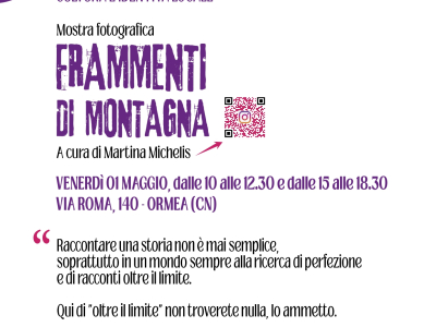 In occasione de 'Il Cuore della Montagna', venerdì 01 maggio, in Via Roma 140, sarà possibile visitare la mostra fotografica 'Frammenti di Montagna', a cura di Martina Michelis.