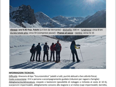 Domenica 25 gennaio la guida escursionistica Monica Dalmasso accompagnerà un’escursione con le racchette da neve verso il Gias della Creusa, a quota 1540 metri.
