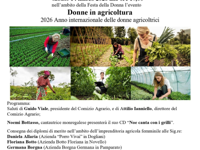 Il Comizio Agrario di Mondovì organizza Sabato 14 marzo 2026 alle ore 17 presso la sede di Mondovì "Donne in agricoltura, 2026 anno delle Donne Agricoltrici"