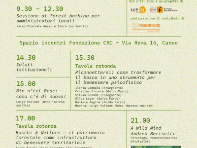 Il 28 novembre 2025 presso lo "Spazio incontri Fondazione CRC" si terranno una serie di incontri organizzati da Weco impresa sociale e Aree Protette Alpi Marittime.