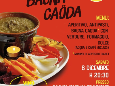 Il Comitato SAVELLA vi invita il 6 Dicembre alle ore 20:30 alla Serata BAGNA CAÖDA, presso il padiglione in frazione Savella!
