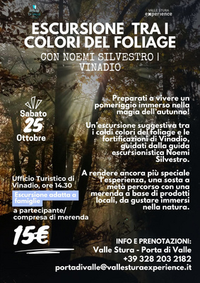 In occasione della Fiera dei Santi di Vinadio viene programmata un'escursione suggestiva tra i caldi colori del foliage e le fortificazioni di Vinadio, guidati dalla guida escursionistica Noemi Silvestro sabato 25 ottobre.