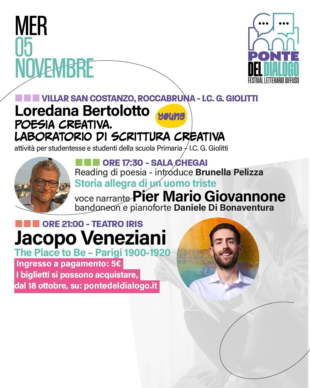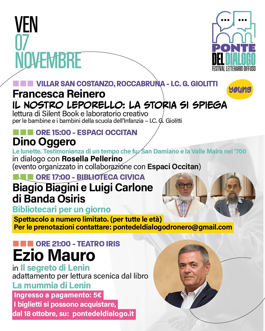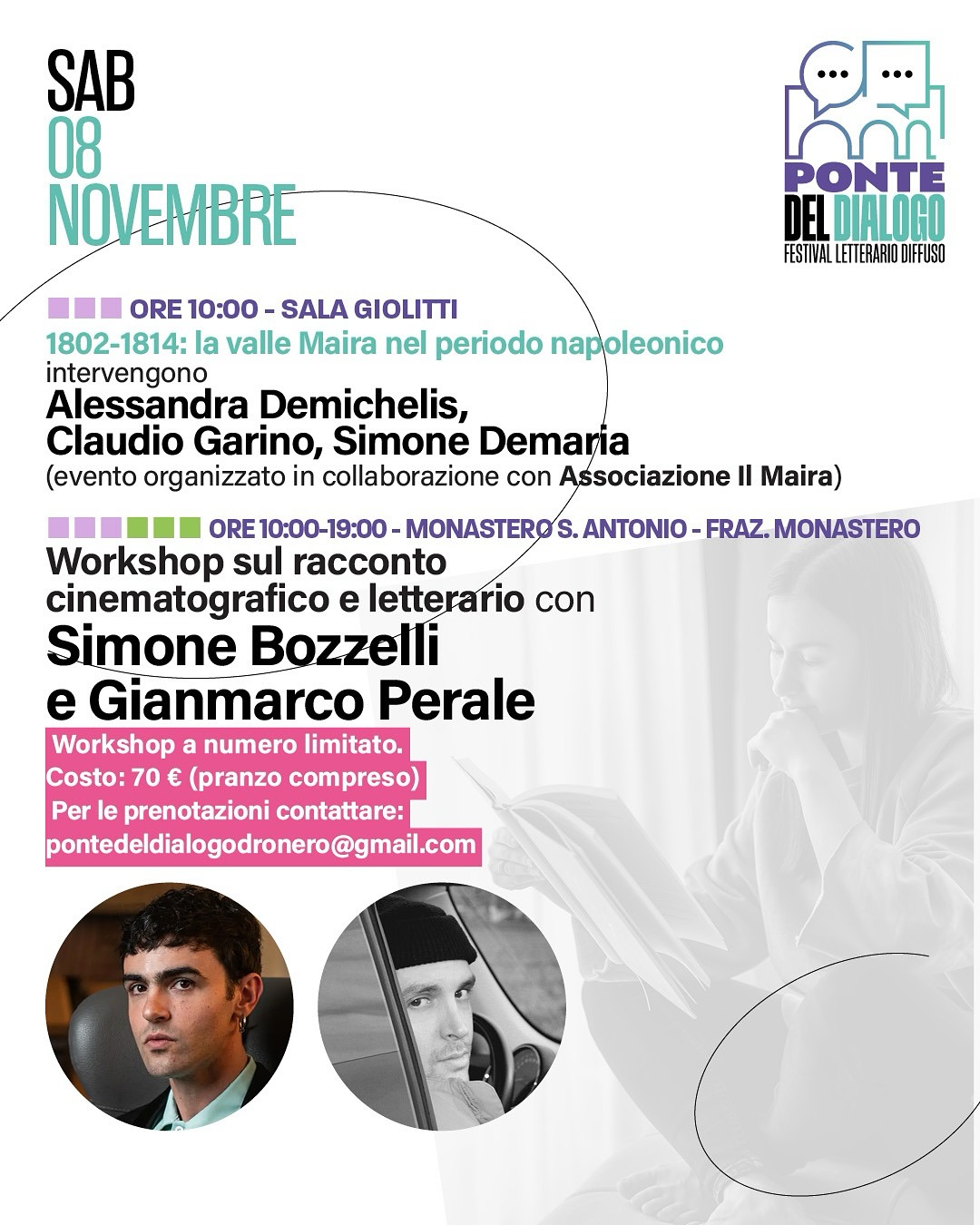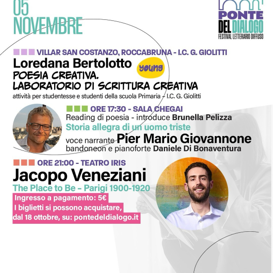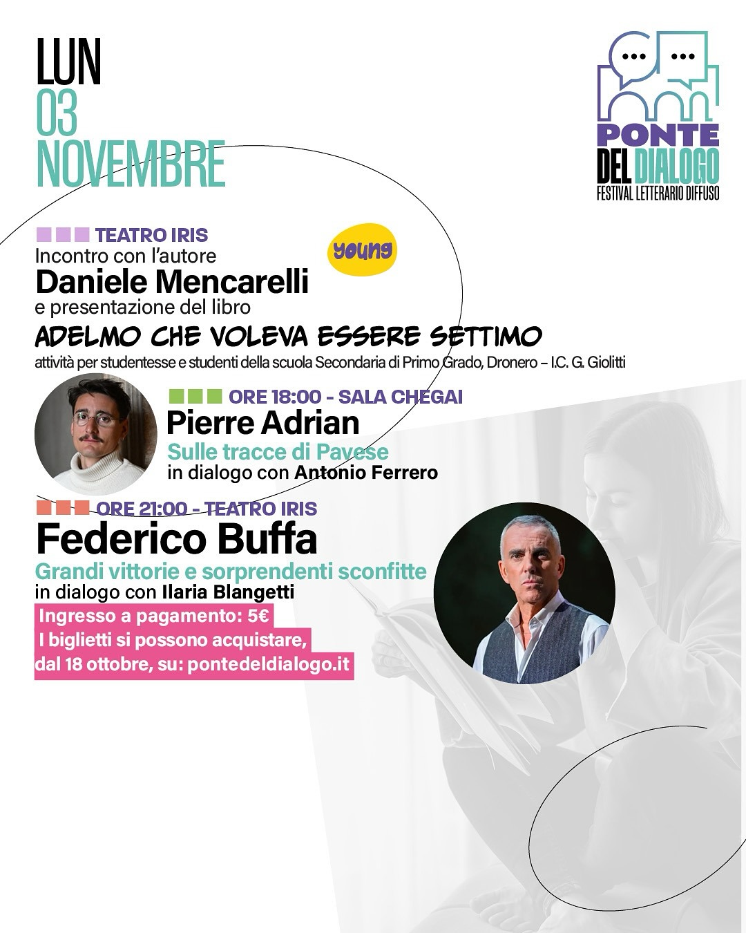 Dal 2 al 9 novembre 2025, Dronero si trasforma ancora una volta nel luogo dove le voci si incontrano e i pensieri si intrecciano con "Ponte del dialogo". Otto giorni per attraversare nuove storie, ascoltare voci sorprendenti e lasciarsi ispirare dal potere delle parole. Scopri il programma