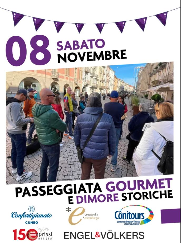 Appuntamento aperto a tutti a Cuneo, sabato 8 novembre alle ore 10.30 con Passeggiate Gourmet tra le dimore storiche - Stracôni. Una passeggiata tra le dimore storiche di Cuneo per riscoprire la città con uno sguardo nuovo, tra bellezze nascoste e storie affascinanti. Se vuoi scoprire i segreti della città, partecipa alla Passeggiata Gourmet: una sorpresa golosa ti aspetta lungo il percorso. Evento riservato agli iscritti alla stracittadina, su prenotazione.