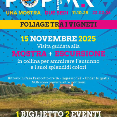 Proseguono gli appuntamenti "Un biglietto, due eventi" presso Casa Francotto a Busca: sabato 15 novembre alle ore 14.00 visita guidata alla mostra "SBAM! Un percorso nella Pop Art" ed escursione in collina per ammirare l'autunno e i suoi splendidi colori. Ticket 12€, prenotazione obbligatoria.