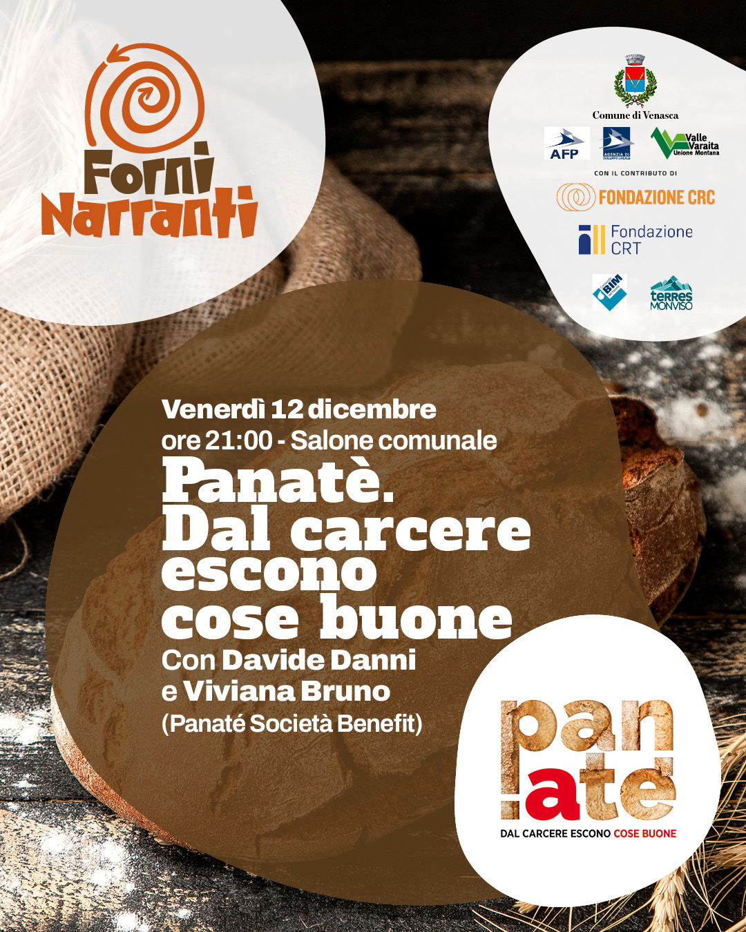 Forni Narranti è una manifestazione culturale originale e alla sua prima edizione, nata su un substrato identitario per Venasca: quello della tradizione della panificazione. “Forni Narranti” nasce non solo come festival culturale, ma come momento di riscoperta delle radici locali e di costruzione di nuovi ponti tra passato e presente e tra diversi luoghi, trasformando Venasca in un laboratorio di memoria viva e creatività condivisa. Fino al 21 dicembre, la rassegna porta in paese un ricco calendario di eventi, tutti a ingresso libero, dedicati alle storie del pane, inteso non solo come alimento ma come simbolo di cultura, condivisione e memoria collettiva.