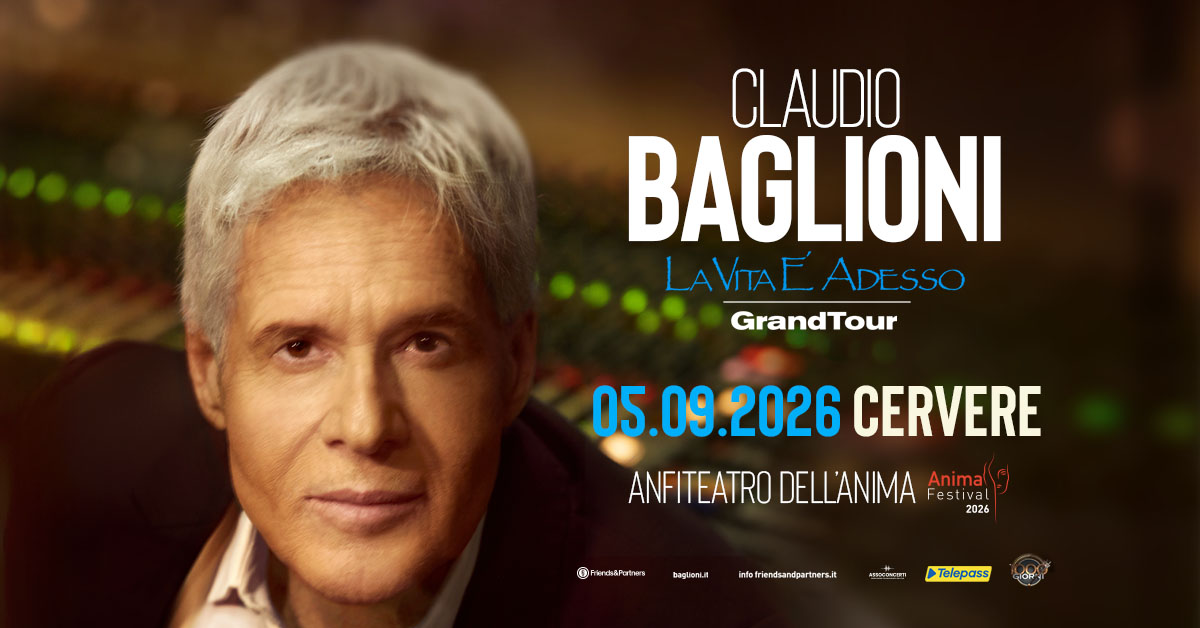Sabato 5 settembre sul palco dell'Anima Festival, nella suggestiva cornice dell'Anfiteatro dell'Anima a Cervere, Claudio Baglioni in concerto con “GrandTour LA VITA È ADESSO”: il progetto musicale dal vivo che celebra i 40 anni dell’album più venduto di sempre in Italia, un disco che ha segnato un’epoca “LA VITA È ADESSO, IL SOGNO È SEMPRE”. Per acquistare i biglietti clicca qui.