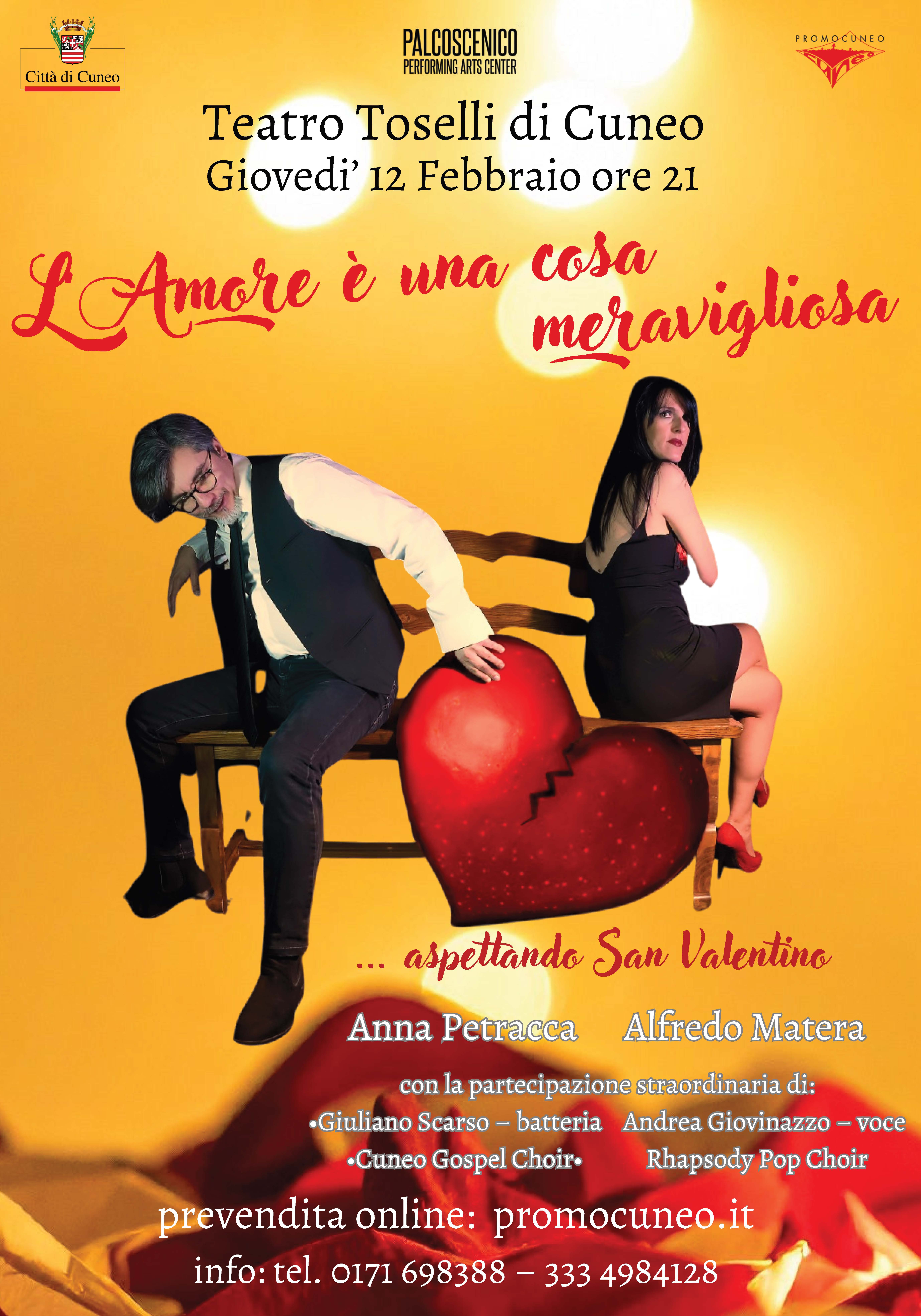 Giovedì 12 febbraio, alle ore 21.00 al Teatro Toselli di Cuneo andrà in scena “L'Amore è una cosa Meravigliosa – Aspettando San Valentino”, un concerto intimo e raffinato dedicato all’amore e alle sue infinite sfumature.