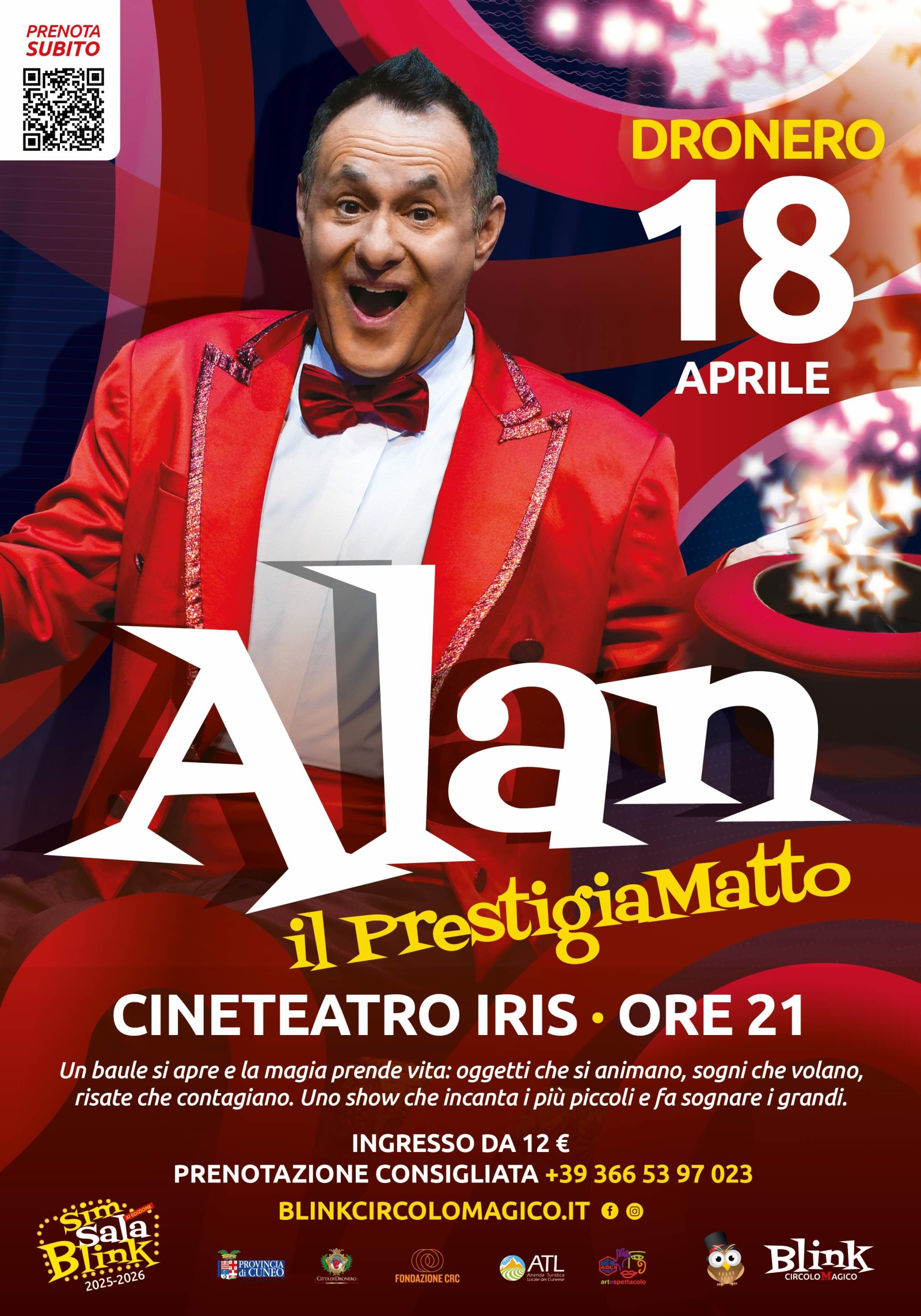 Sabato 18 aprile ore 21.00 presso il CineTeatro Iris di Dronero un nuovo, imperdibile family show di SIM Sala Blink, la rassegna magica del “circolo magico più felice del mondo”.