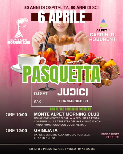 Monte Alpet compie 60 anni! Per festeggiare questo meraviglioso traguardo ci saranno eventi tutto l'anno. Il secondo appuntamento? Lunedì dalle ore 10:00, presso l'Albergo Alpino, verrà organizzato la "Pasquetta ai Cardini". Prenotazione obbligatoria per telefono o su WhatsApp.