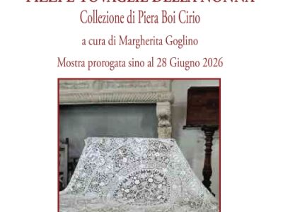 Da domenica 18 gennaio a domenica 28 giugno, Casa Ravera a Bene Vagienna ospita la mostra "Pizzi e tovaglie della nonna", collezione di Piera Boi Cirio, a cura di Margherita Goglino. L’inaugurazione si terrà il 18 gennaio alle ore 11.30.