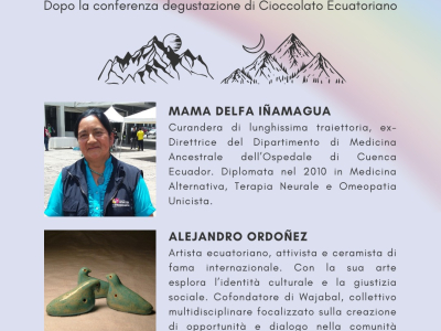 Sabato 25 ottobre, dalle ore 20.30 alle ore 22.30 il Museo della Ceramica di Mondovì ospita l'incontro "Ceramica per la Salute" con Mama Delfa Iñamagua (curandera ecuadoriana) e Aleandro Ordoñez (artista e ceramista ecuadoriano).