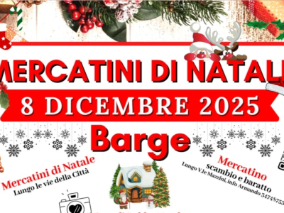 L'8 Dicembre 2025 arriva il mercatino di natale nel centro storico di Barge, unendo tradizione e l'atmosfera da fiaba tra luci scintillanti, prodotti artigianali e tipici, tra cui vin brule, cioccolata calda, caldarroste e street food!