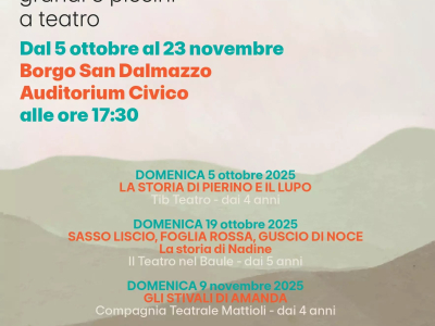 L’Amministrazione Comunale di Borgo San Dalmazzo presenta la 23ª edizione della rassegna teatrale “Un Sipario tra Cielo e Terra”, dedicata a bambini e famiglie nelle domeniche del 9 e 23 novembre. Gli spettacoli si terranno presso l’Auditorium Civico Città di Borgo San Dalmazzo, con inizio alle o