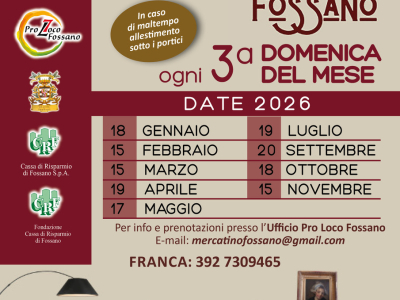 Domenica 18 gennaio si tiene il Mercatino dell'Antiquariato e del Collezionismo in Via Roma a Fossano, dal mattino.