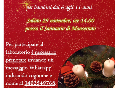 L’Associazione Santuario di Monserrato odv propone un’esperienza creativa dedicata ai bambini: la realizzazione della corona dell’Avvento con le quattro candele che accompagneranno il cammino di attesa verso il Natale. Il laboratorio natalizio gratuito è rivolto ai bambini dai 6