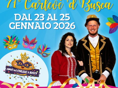 Dal 23 al 25 gennaio 2026, Busca celebra la 71° edizione del Carlévè ’d Busca, un appuntamento imperdibile che animerà la città per tre giorni di festa con un ricco programma per grandi e piccini, fino al gran finale con la tradizionale sfilata dei carri allegori