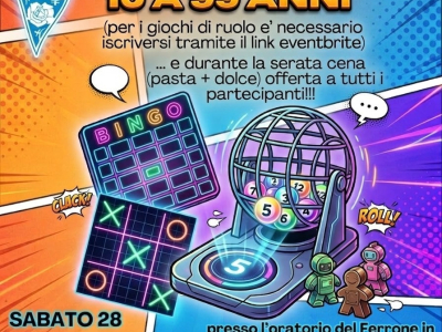 Un nuovo appuntamento di “Mettiamoci in gioco” è in arrivo sabato 28 marzo 2026 a partire dalle ore 18 presso i locali dell’oratorio della Parrocchia di Santa Maria Maggiore a Mondovì. Sarà possibile prendere parte ai tavoli dei giochi di ruolo (iscrizione obbligatoria