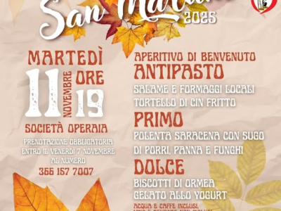 Il Comune di Ormea e la Pro Loco di Ormea vi invitano martedì 11 novembre 2025 dalle ore 19 presso la Società Operaia di Ormea per la Cena di San Martino 2025.