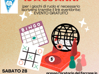 Un nuovo appuntamento di “Mettiamoci in gioco” è in arrivo sabato 28 febbraio 2026 a partire dalle ore 20 presso i locali dell’oratorio della Parrocchia di Santa Maria Maggiore a Mondovì Borgo Ferrone in Via San Bernolfo n.16.Sarà possibile prendere parte ai tavoli dei giochi di