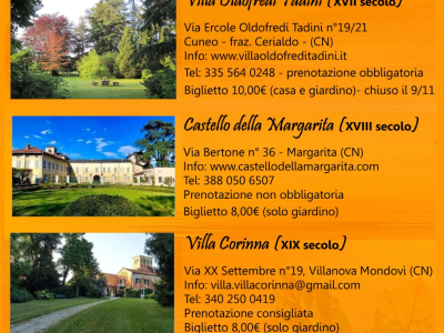 Domenica 19 ottobre e domenica 26 ottobre, dalle ore 10.30, presso Madonna dell'Olmo di Cuneo, a villa Oldofredi Tadini sono organizzate visite speciali in occasione della riapertura dei "Giardini della Granda".