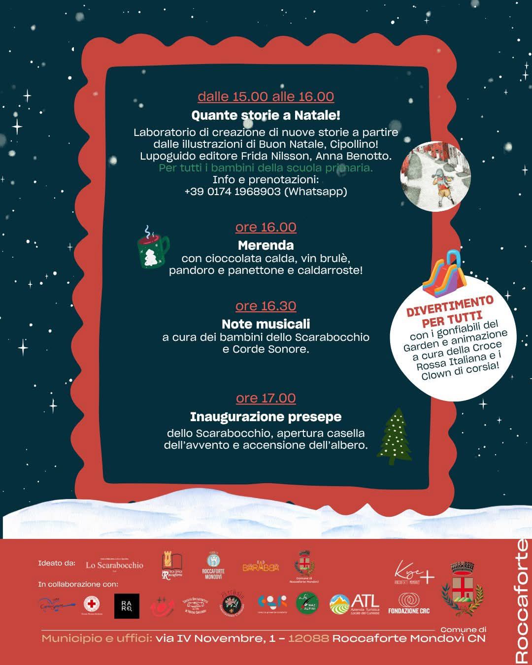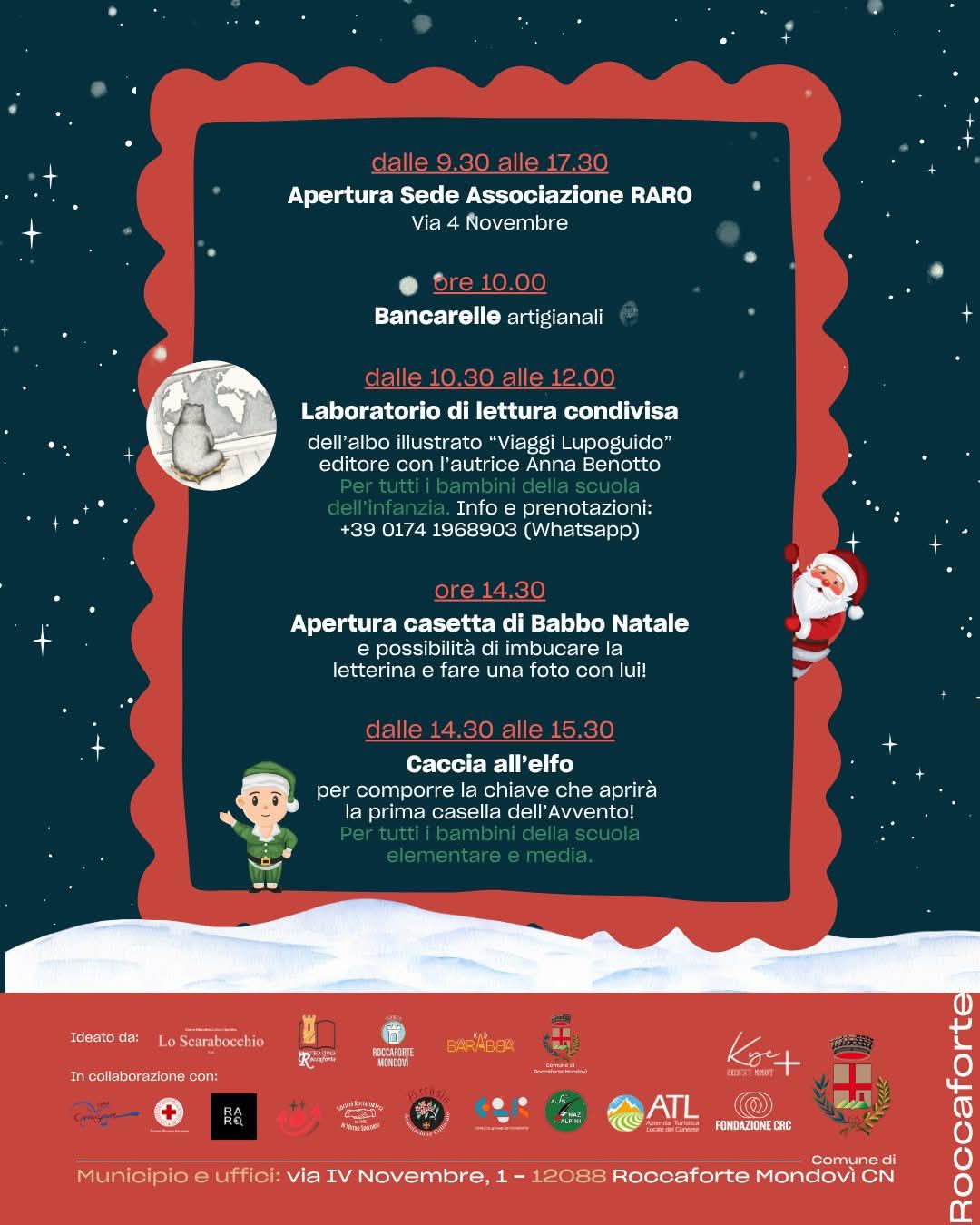 Domenica 30 novembre 2025 Roccaforte Mondovì dedica una giornata intera alle famiglie con “Aspettando il Natale”, un appuntamento che unisce letture, laboratori creativi, musica e la presenza di Babbo Natale.