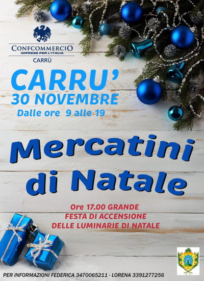 Domenica 30 novembre, dalle ore 9.00 alle 19.00, appuntamento aperto a tutti a Carrù con il Mercatino di Natale. Babbo Natale, cioccolata calda, vin brulè e tanto altro. Alle ore 17.00 grande festa di accensione delle luminarie, per inaugurare insieme la magia del Natale a Carrù.
