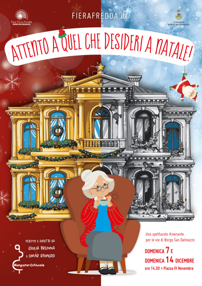 Domenica 7 e 14 dicembre, alle ore 14,30 presso il centro storico di Borgo San Dalmazzo (ritrovo in Piazza IV Novembre), vi aspetta lo spettacolo itinerante "Attento a quello che desideri" organizzato da "I mangiatori di nuvole". Evento libero e gratuito.