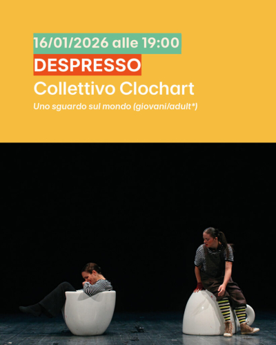 Venerdì 16 gennaio alle 19.00 a Cuneo, nell'ex chiesa di Santa Chiara (via Savigliano), andrà in scena "Despresso" del Collettivo Clochart, la storia di due figure che si incrociano, differenti ma vicine tra loro: Giorgia e Viviana. Lo spettacolo ci invita a ribaltare il punto di vista tradizionale che porta a identificare subito chi è “il diverso” e a interrogarci sulla normalità: cos’è davvero “normale”? Teatro-danza e clownerie sono i due linguaggi utilizzati, con il loro stile semplice ma potente. Clicca qui per il programma completo della rassegna invernale.