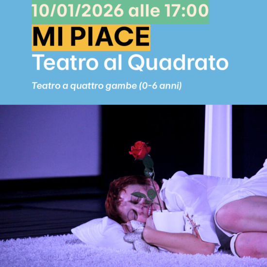 Sabato 10 gennaio ore 17.00 a Cuneo, presso l'ex chiesa di Santa Chiara (via Savigliano), vi aspetta "Mi piace", della compagnia Teatro al Quadrato di Udine. Uno spettacolo senza parole per bambine e bambini dai 2 ai 5 anni, una storia delicata e poetica sul desiderio di far crescere un fiore, tra immagini, suoni e gesti, che valorizza ascolto, meraviglia e attenzione verso ciò che cresce. Ingresso € 4,00. Di e con Maria Giulia Campioli e Claudio Mariotti. Programma completo della rassegna invernale dell'Officina Santachiara cliccando qui.