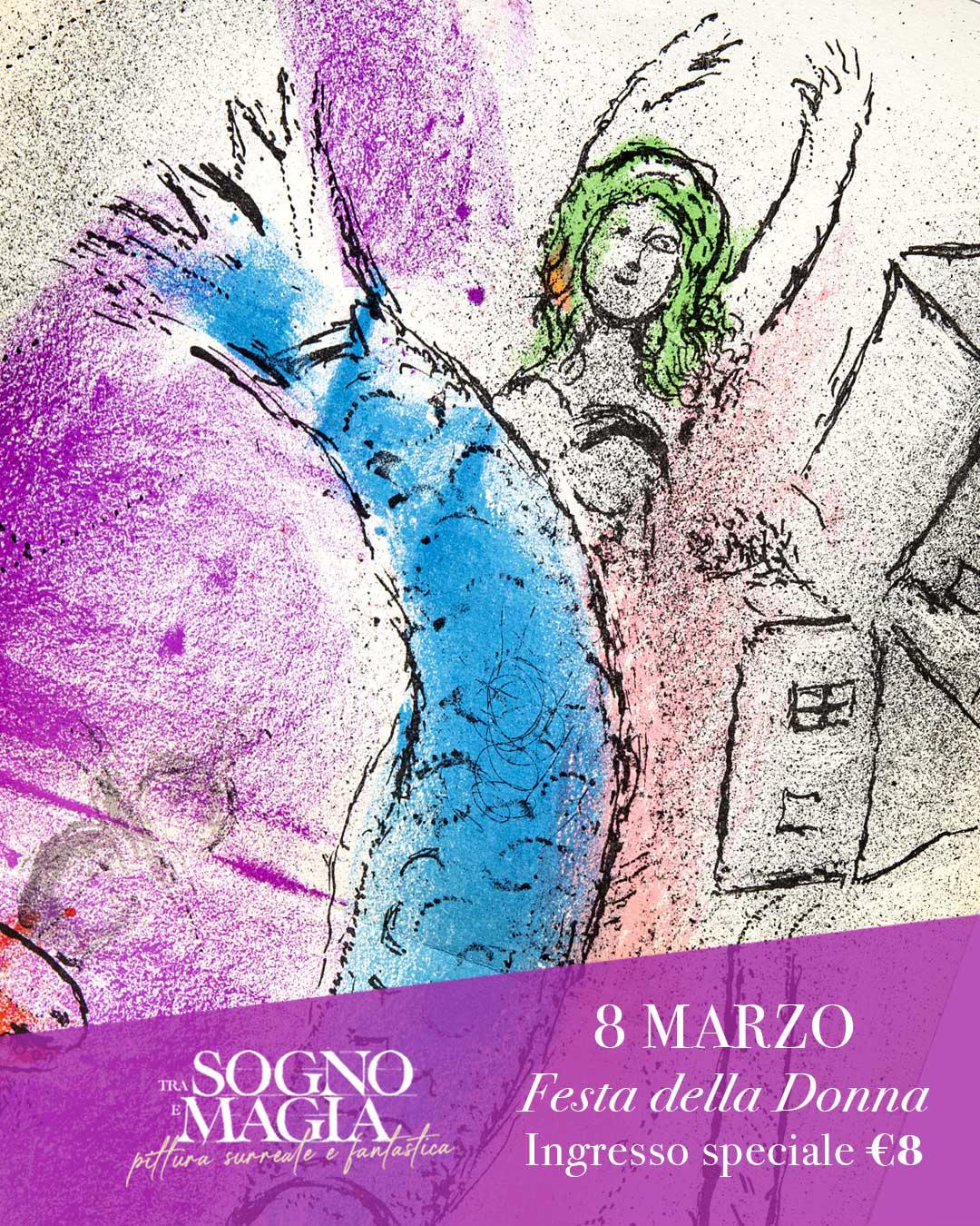 Per celebrare la Festa della Donna lasciati trasportare in un mondo di visioni, simboli e meraviglia con la mostra “Tra sogno e magia, pittura surreale e fantastica”. Sabato 7 marzo apertura serale dalle 21 alle 23 e visita guidata alle ore 2. Domenica 8 marzo tutte le donne potranno visitare la mostra con biglietto ridotto a € 8 anziché € 12 e visita guidata ore 16.