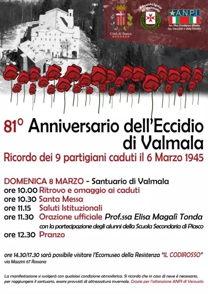 Domenica 8 marzo si terrà la cerimonia istituzione al Santuario di Valmala-Busca, in ricordo del tragico atto di sangue compiuto il 6 marzo 1945 quando i fascisti della divisione Monterosa uccisero nove partigiani.
