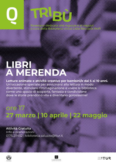Venerdì 27 marzo, alle ore 17.00, presso la Biblioteca Civica di Saluzzo si terrà il primo appuntamento di "Libri a merenda", un'occasione speciale per avvicinarsi alla lettura in modo divertente. Letture animate e attività creative stimoleranno l'immaginazione dei bambini dai 5 ai 10 anni, creando uno spazio di scoperta, fantasia e condivisione. Ingresso gratuito, prenotazione consigliata.