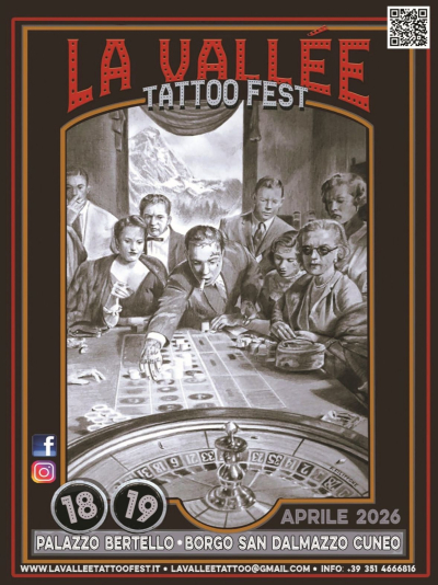LaValleeTattooFest celebra la cultura del tatuaggio sabato 18 Aprile e domenica 19 Aprile a Borgo San Dalmazzo a Palazzo Bertello. Una vetrina esclusiva per conoscere da vicino il lavoro di artisti internazionali, arricchita da performance dal vivo e offerta enogastronomica.