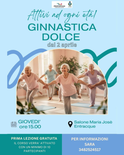 Giovedì 2 aprile, alle ore 15,00 presso il Salone "Maria Josè" di Entracque, vi aspetta il primo appuntamento di ginnastica dolce per tutte le età. Evento gratuito, prenotazione consigliata.