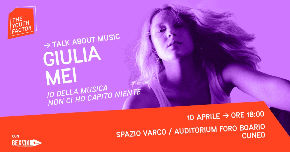 Torna “The Youth Factor”, il progetto di audience engagement e audience development rivolto agli istituti superiori di Cuneo, con una nuova edizione ricca di ospiti e appuntamenti condotti da Margherita Devalle. Il primo appuntamento in programma venerdì 10 aprile, alle 18, presso l’Auditorium Foro Boario di Cuneo con la cantautrice Giulia Mei. Tutti gli appuntamenti Talk About Music sono a ingresso gratuito, su prenotazione.