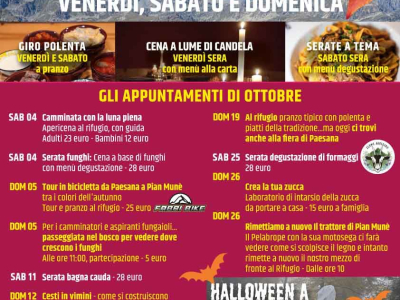 Il Rifugio Pian Munè (Paesana), in Valle Po, nel mese di ottobre si susseguono molti eventi per tutte e tutti, all’insegna della natura, del buon cibo e delle