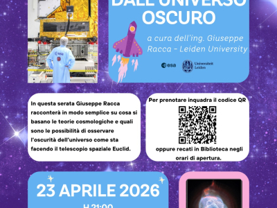 Giovedì 23 aprile, alle ore 21.00, l'Auditorium San Giuseppe di Marene organizza ed ospita "Ultime novità dall'universo oscuro", una serata di divulgazione scientifica con l'Ingegnere Giuseppe Racca.