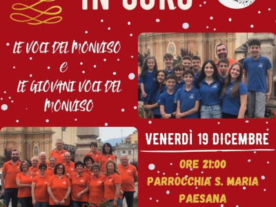 Venerdì 19 dicembre, alle ore 21.00, nella Chiesa Parrocchiale di Santa Maria di Paesana si terrà il concerto "Un Natale in coro" dell'Associazione Le Voci del Monviso.