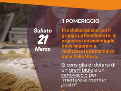 Sabato 21 marzo, dalle ore 15 presso la Porta di Valle a Demonte, pomeriggio speciale dedicato ai Crouset, la pasta tipica della Valle Stura.