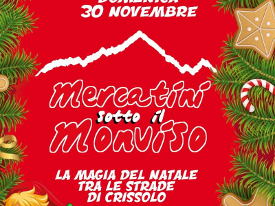 Domenica 30 novembre Crissolo sarà animata dal tradizionale mercatino natalizio. L'appuntamento con i "Mercatini sotto il Monviso" vedrà la presenza di una settantina e più di espositori, di svariati generi, che troveranno spazio nelle vie e nell