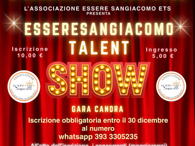 Ti piace cantare e vorresti esibirti in pubblico? Partecipa alla gara canora "Esseresangiacomo talent show" organizzata dall'associazione Essere Sangiacomo ETS il 2 gennaio alle ore 21:00 presso il Cinema centro congressi.