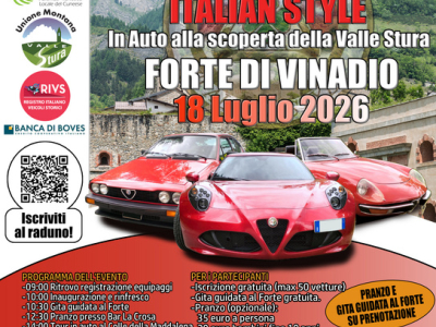 Club Alfa Romeo Italian Style di Boves organizza il primo raduno che si terrà il 18 Luglio 2026, all'interno delle mura del Forte di Vinadio. L'evento, che si svolgerà durante l'arco di tutta la giornata, prevede l'arrivo di circ