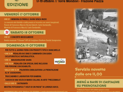 Appuntamento aperto a tutti a Venasca con la XXXIV Mostra Mercato dei Prodotti della Valle Varaita - La Castagna. Da venerdì 17 ottobre a lunedì 20 ottobre tradizionale appuntamento autunnale dedicato al frutto più prezioso della stagione, che in