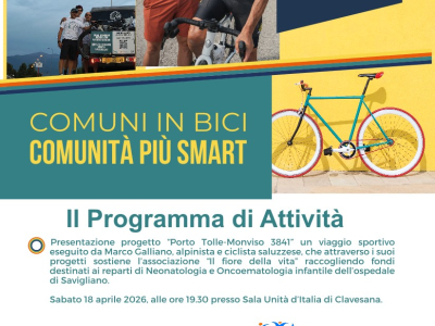 Sabato 18 aprile alle 19.30 presso la sala polivalente "Sala unità d'Italia" di Clavesana sarà presentato il progetto "Una montagna di sorrisi.