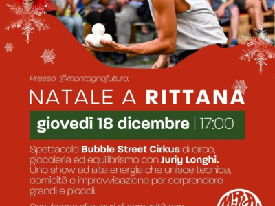 Il Natale a Rittana si accende di energia, allegria e stupore giovedì 18 dicembre alle ore 17, presso la bocciofila di Rittana, andrà in scena lo spettacolo Bubble Street Cirkus con Jurij Longhi, artista che unisce giocoleria, equilibrismo e comicità in un’esibiz