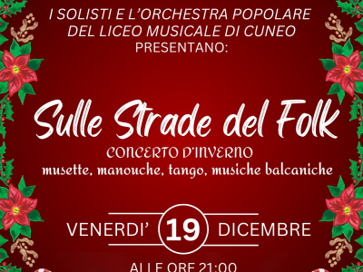 Venerdì 19 dicembre, alle ore 21,00 presso la chiesa parrocchiale di San Martino a Valdieri, i solisti e l'orchestra popolare del Liceo Musicale di Cuneo si esibiranno nello spettacolo musicale "Sulle strade del Folk". Un viaggio tra musette, man
